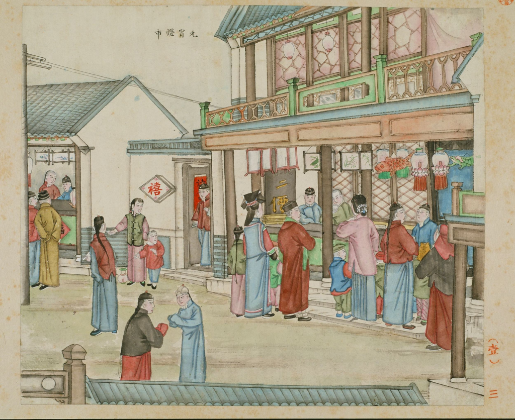 此《北京风俗图谱》由民国时期刘延年等绘,日本青木正儿编。画册共收录一百一十七幅图,内容分为岁时、礼俗、居处、服饰、器用、市井、游乐、伎艺共八部分,描绘并记录了晚清至民国时期北京的岁时风俗、器物服饰与市井百态。此册现藏于日本东北大学附属图书馆。